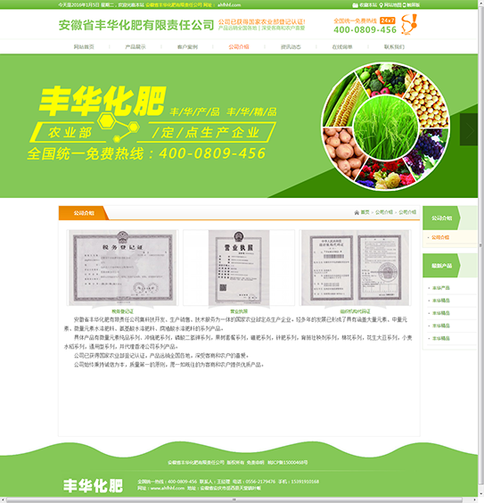 安徽省豐華化肥有限責任公司集科技開(kāi)發(fā)、生產(chǎn)銷(xiāo)售、技術(shù)服務(wù)為一體的國家農業(yè)部定點(diǎn)生產(chǎn)企業(yè)。經(jīng)多年的發(fā)展已形成了具有涵蓋大量元素、中量元素、微量元素水溶肥料、氨基酸水溶肥料、腐殖酸水溶肥料的系列產(chǎn)品。