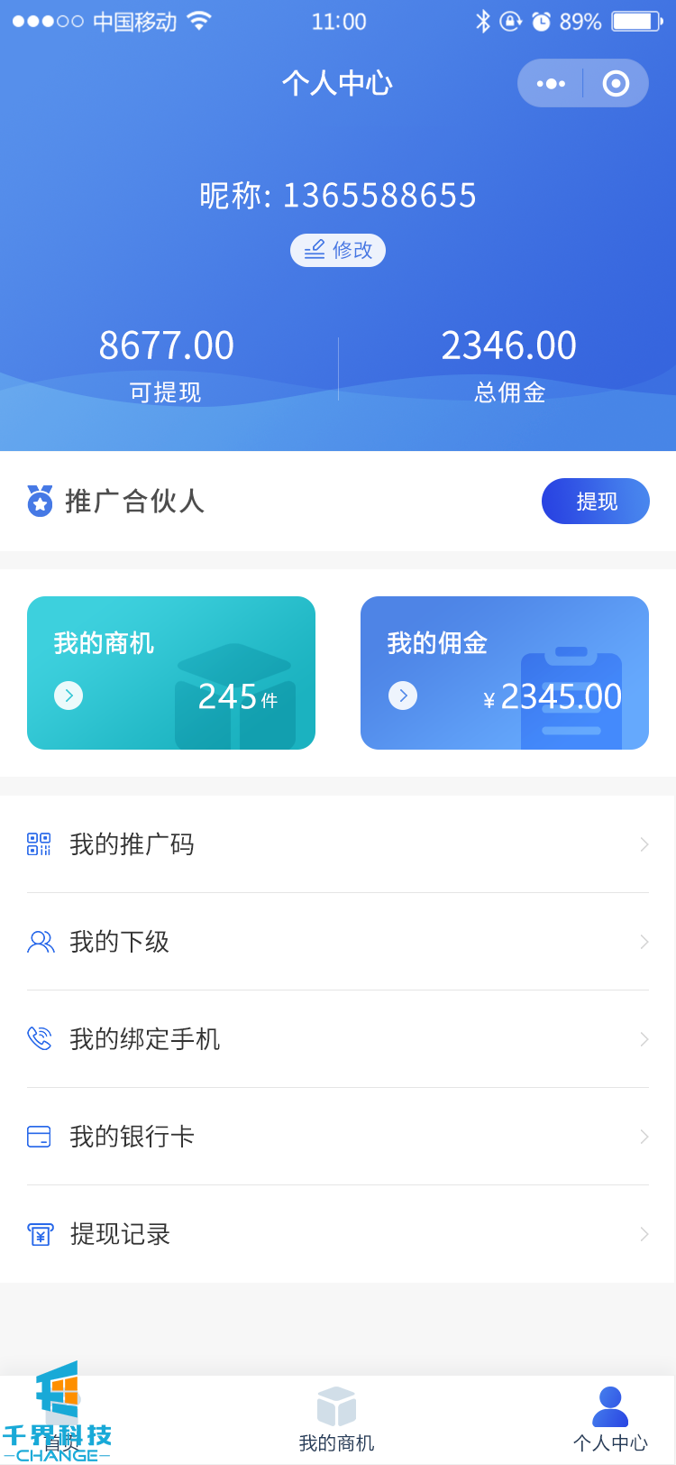 該項目為申請成為推薦人可以向平臺推薦意向商機,由后臺人工審核是否有效,對接ERP系統獲取訂單,將訂單與商機進(jìn)行人工匹配,實(shí)現發(fā)放獎勵。平臺有分銷(xiāo)模式,后臺有多角色靈活權限管理等功能